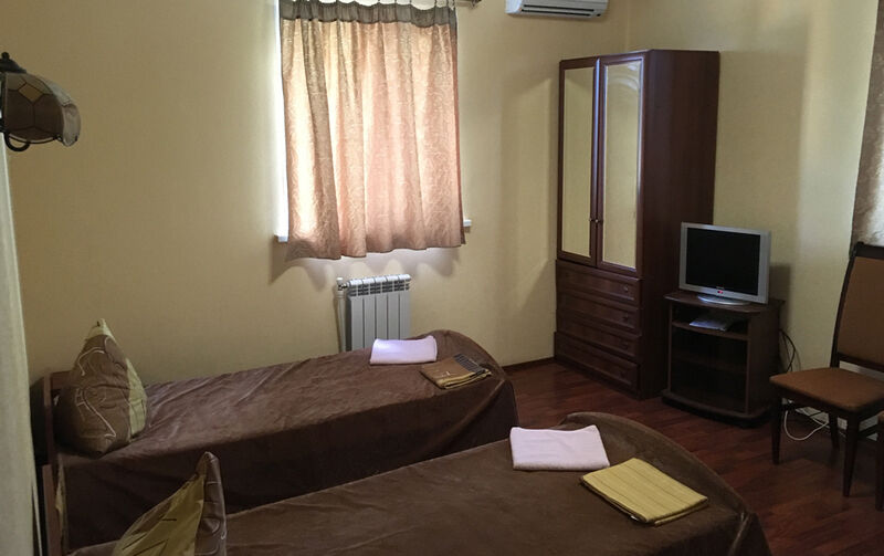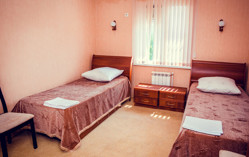 «Двухместный гостиничный номер с односпальными кроватями» — Эконом номер на 2 человека. В номере установлена кондиционер, холодильник , TV, 2 односпальные кровати