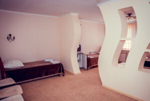 «Двухместный гостиничный номер с двухспальной кроватью» — Эконом номер на 2 человека. В номере установлена кондиционер, холодильник , TV, 2 двухспальная кровать.