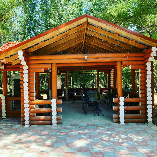 Летняя беседка с мангальной зоной. Установлены столы и стулья до 20 персон, холодильник, раковина, а также выдается необходимая посуда.