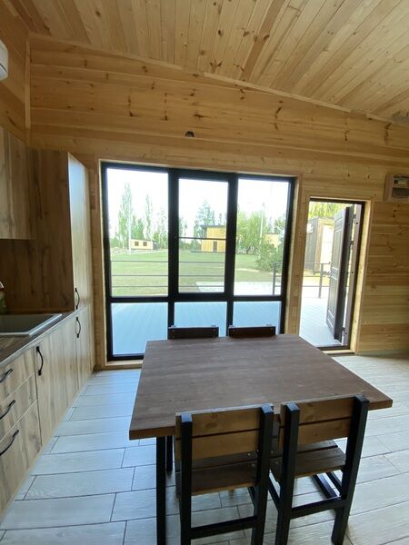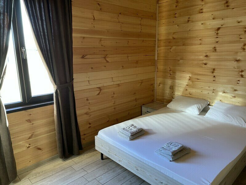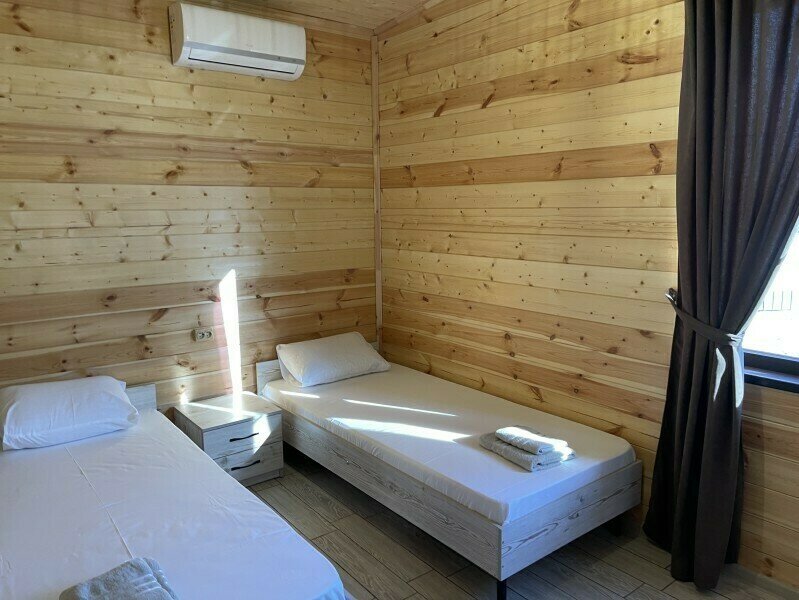 На большой территории базы расположились коттеджи в минималистичном дизайне. Дома обустроены спальнями, кухней–гостиной, ванной комнатой. Среди удобств имеются просторные светлые комнаты, индивидуальная терраса, комфортабельные спальные места, душевая кабина, кондиционер, телевизор с кабельным телевидением, Wi–Fi. Доступна бесплатная аренда мангала.