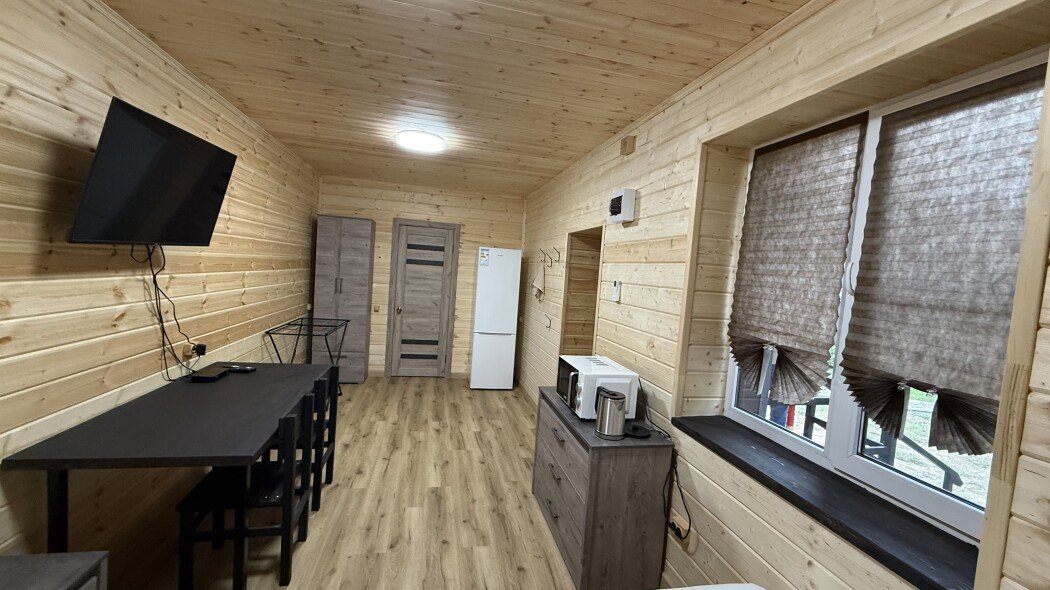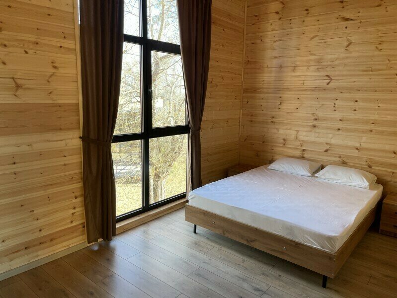 Коттедж Стандарт имеет зал и две спальные комнаты. Четыре основных места, входят в стоимость (двуспальная кровать и две односпальные кровати), а также два дополнительных места (раскладной диван).