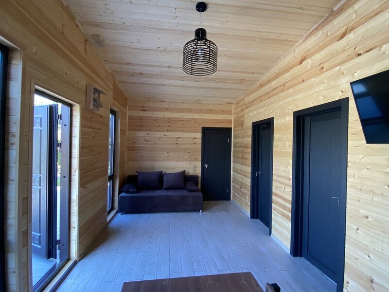 Коттедж Вип имеет четыре спальные комнаты и просторный холл. Восемь основных мест, входят в стоимость (четыре двуспальные кровати), а также четыре дополнительных места (два раскладных дивана).