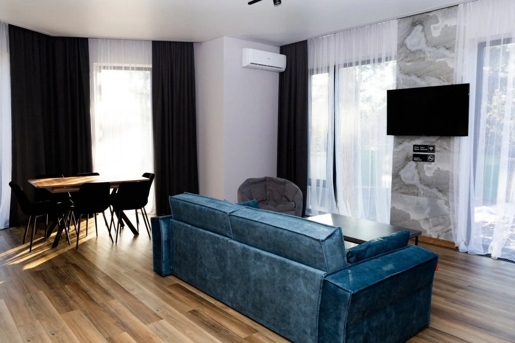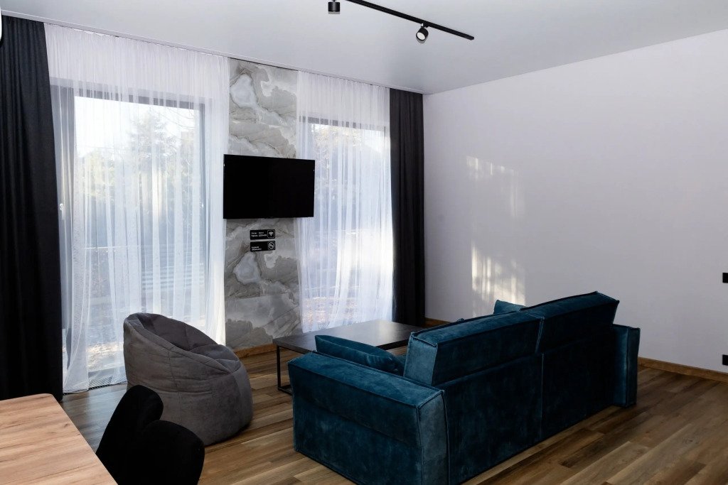 На закрытой территории размещены два частных дома, полностью оборудованных для отдыха. На участке имеется зона для барбекю и садовая мебель. За дополнительную плату доступна отдельная спа-зона с финской парной. Допускается проживание с собаками небольших пород. Для гостей предусмотрена парковка.