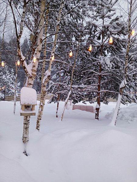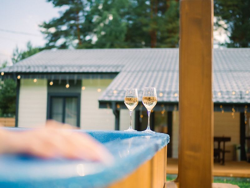 Вода в чане нагревается до комфортной температуры. Чан с гидромассажем и подсветкой. Необыкновенное удовольствие, окунувшись в теплый чан, любоваться ночным небом. Ритм жизни замедляется и появляется ощущение «здесь и сейчас».