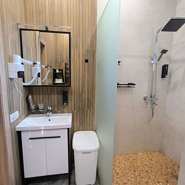 - санузел с необходимыми туалетными принадлежностями, полотенца, халаты;
