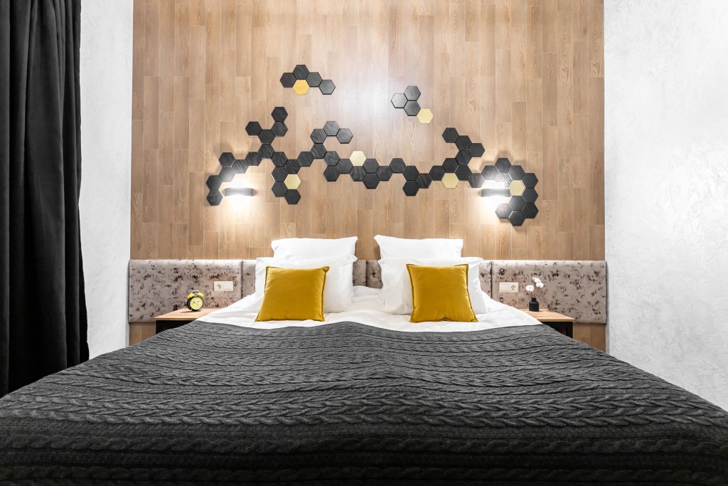 Номер уютно обставлен и оснащён необходимым, чтобы отдохнуть после долгого и насыщенного дня. Имеются телевизор и халат. Оснащение зависит от выбранной категории номера.