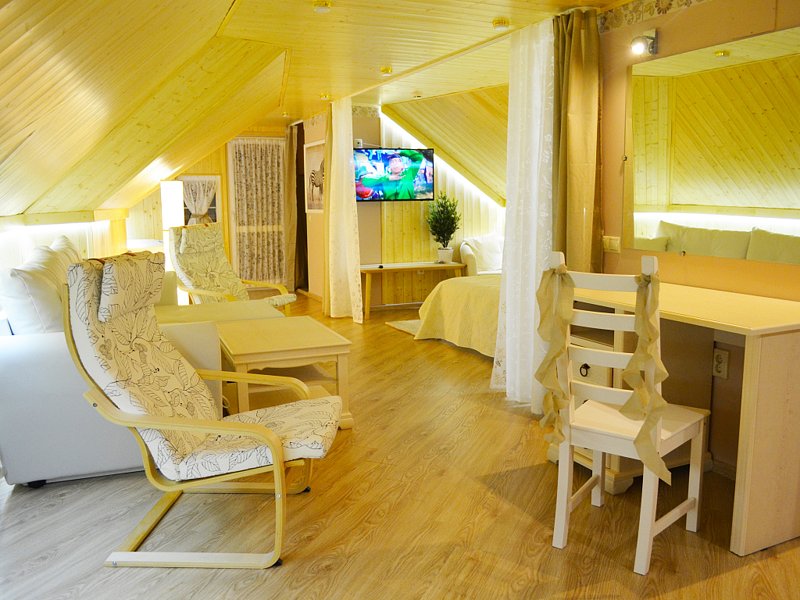 Номерной фонд базы отдыха составляет 17 номеров разной категории — от эконома до люкса. В них есть всё необходимое для комфортного проживания.