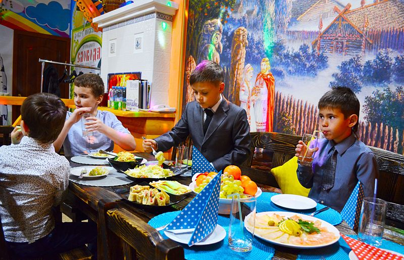 - взрослые — от 2000 ₽ / с гостя, активного участника застолья, от 900 ₽ / со взрослого, сопровождающего ребенка, + 10% обслуживание (вы можете принести свои торт, фрукты, соки),