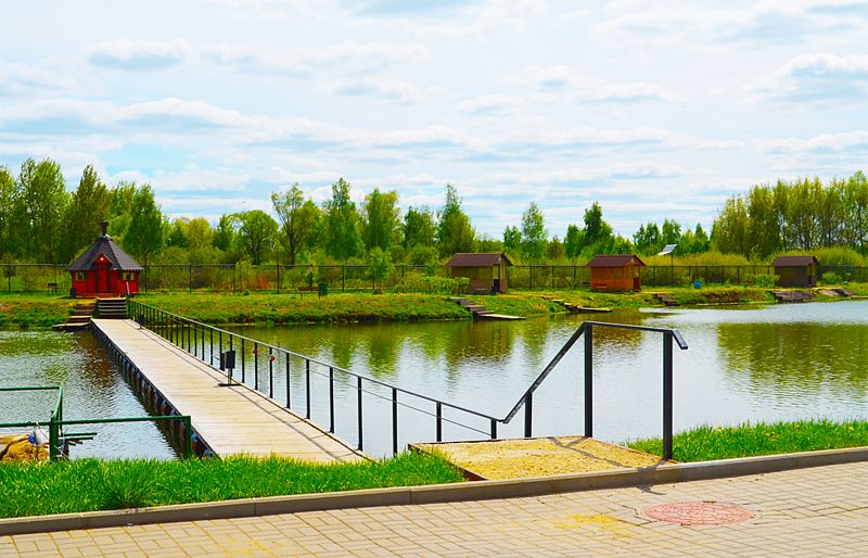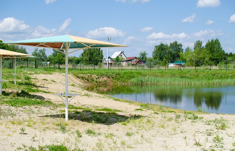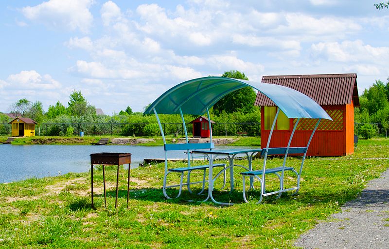 По периметру озера стоят беседки, оборудованные столами, скамейками, мангалом.