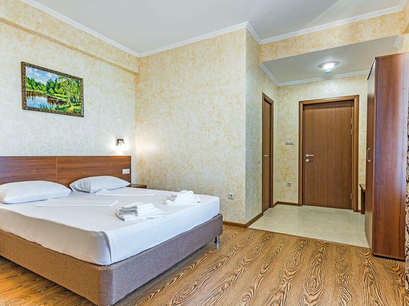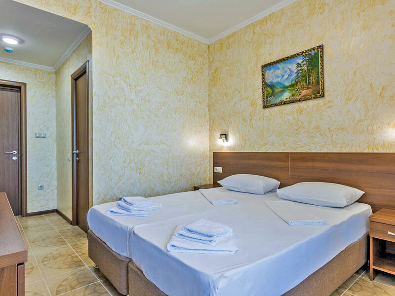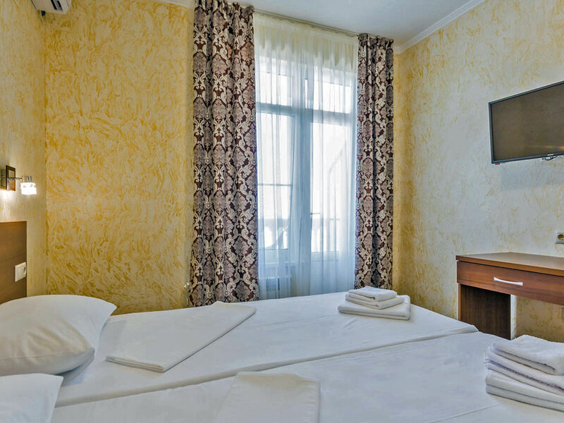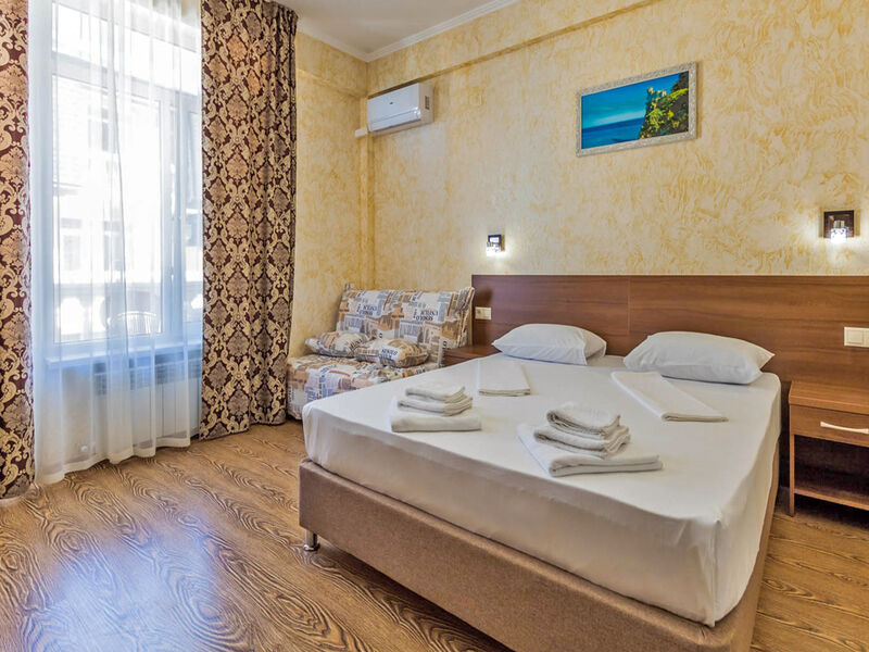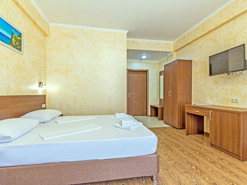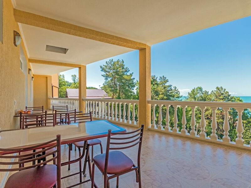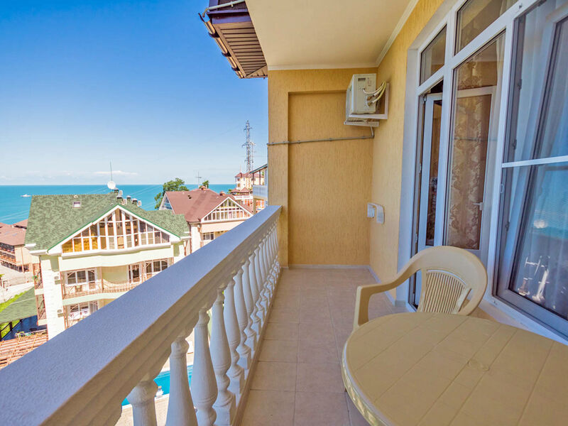 В построенном в 2016 году отеле из 2-х зданий, имеющих по 4 этажа, свободно размещается более 48 человек. Внутренние помещения отеля не уступают по красоте внешним и имеют хорошо продуманную меблировку. Номера оснащены отличными бытовыми и техническими приборами, абсолютно комфортные просторные номера, построенные в новом коттеджном городке с горным воздухом и прекрасным видом на море. Высокий уровень сервиса и комфорта.