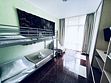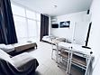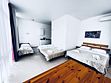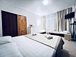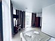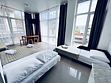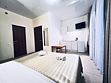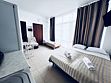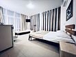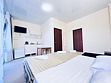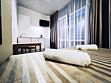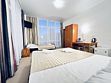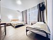 Номера — от уютных стандартов до просторных апартаментов на 4-6 человек. В каждом есть балкон, кондиционер, телевизор, холодильник и своя ванная комната. На первом этаже — общая кухня со всей необходимой техникой и посудой.