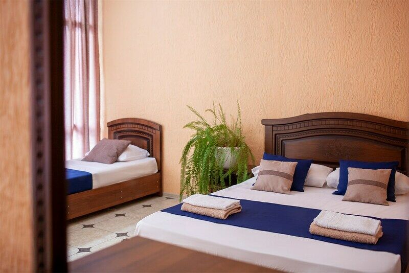 Комфортабельные номера выполнены в стандартном стиле. Каждая комната оснащена всем необходимым для комфортного проживания гостей: кондиционер, балкон, телевизор, холодильник, собственная душевая комната и свежее постельное белье. По всей территории гостиницы работает Wi-Fi.