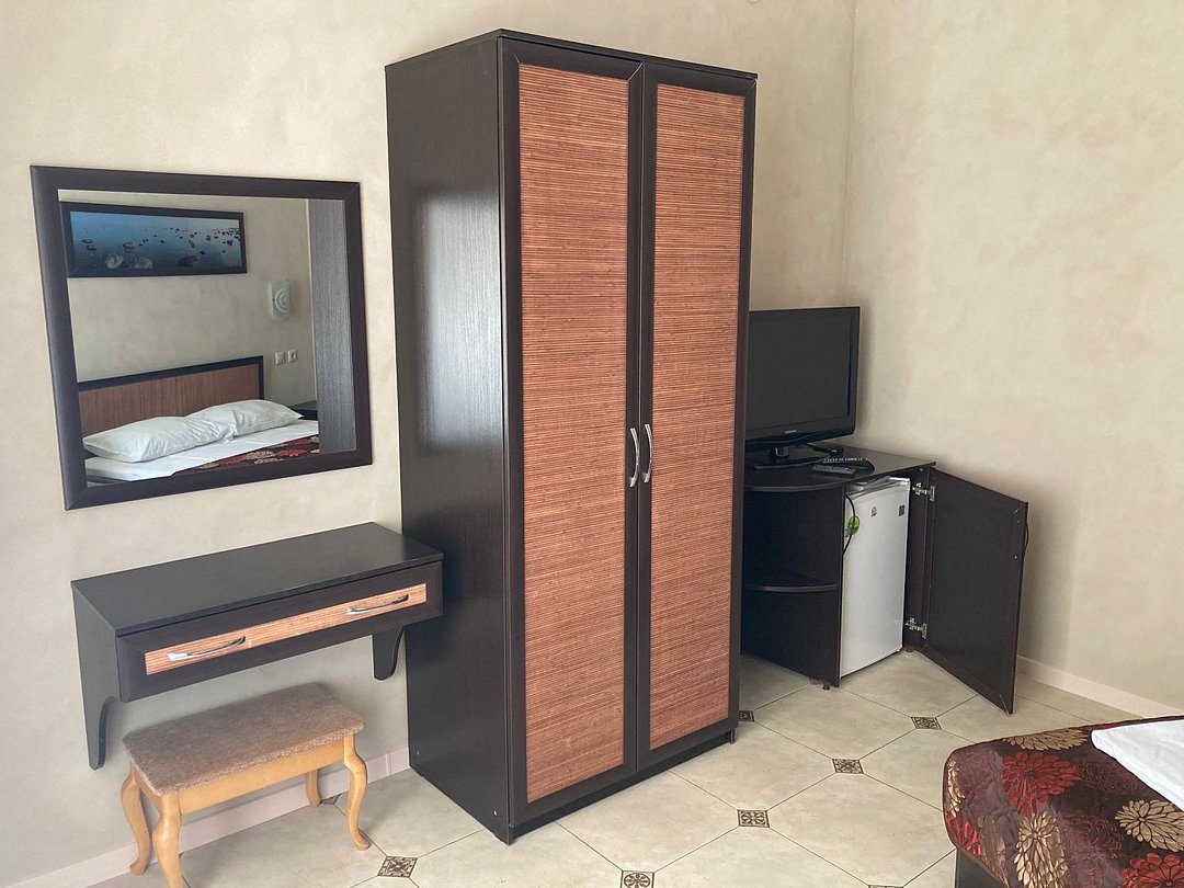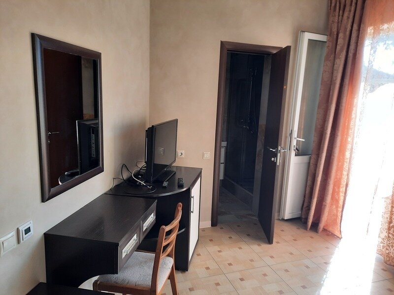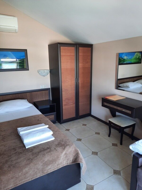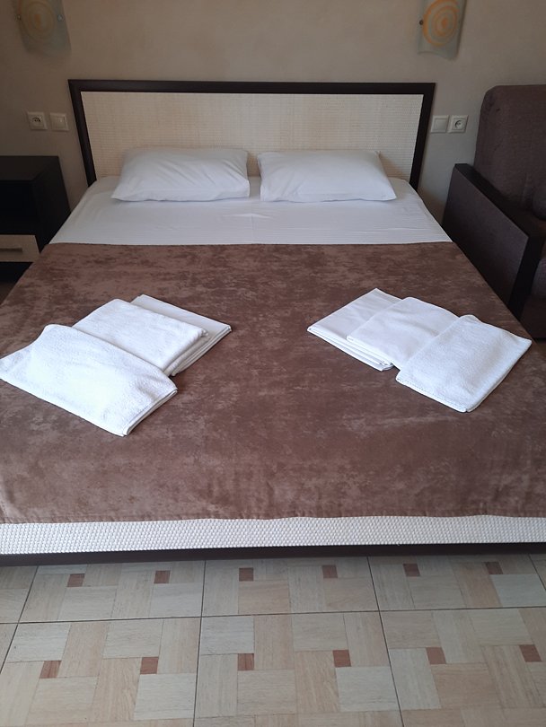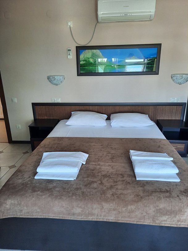 Номер у нас был небольшой, без балкона, с видом на море, чистый. Влажная уборка каждый день, бельё и полотенца белые и меняли своевременно.