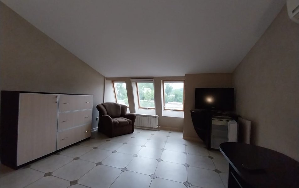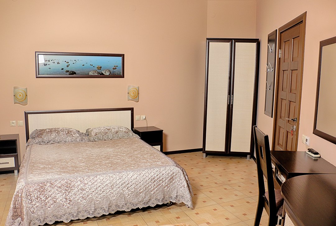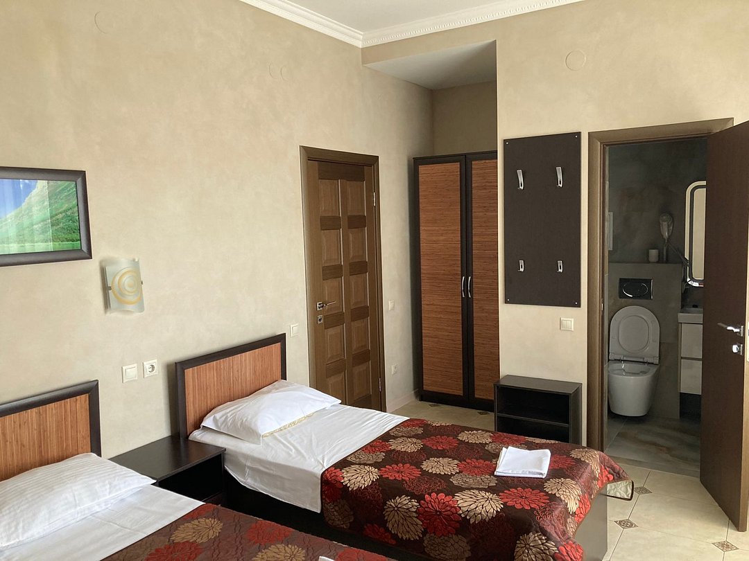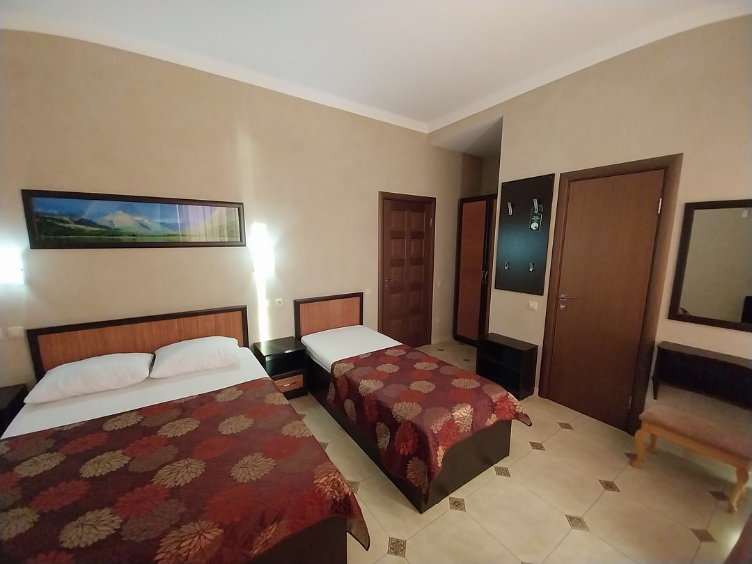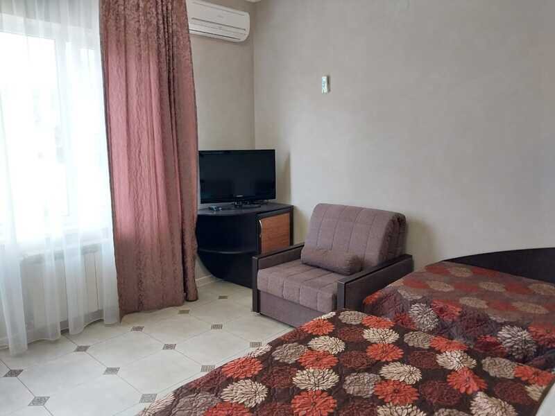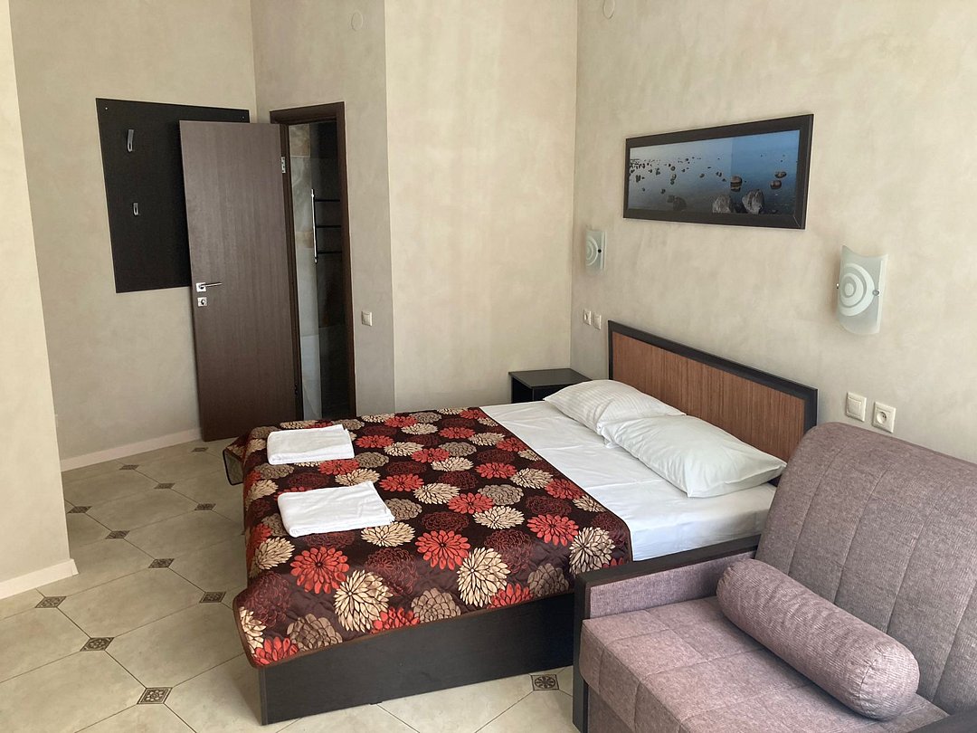 В номере двухспальная кровать, кресло-кровать и при необходимости предоставляется комфортная раскладушка (для детей бесплатно).
