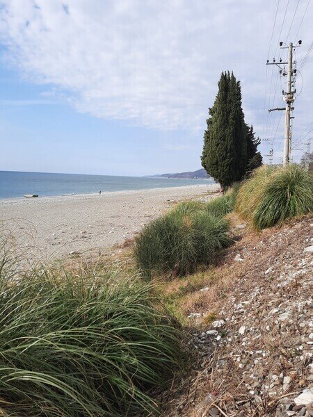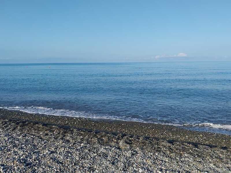 Море в 1 минуте буквально, пляж галечно-песчаный, вход в море не очень приятный, но в специальных тапочках норм.