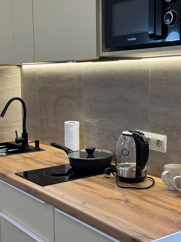 Студии оборудованы кухней, современной техникой и всем необходимым для комфортного отдыха.