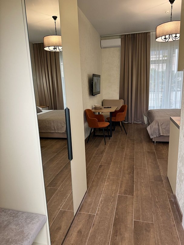 Путешествие с семьейОтличный пляжный отдых для всей семьиУдобная и безопасная парковка для автомобиля. Ухоженная территория безопасная для детей, несколько мангальных зон. Удобный выход на пляж с территории отеля 1 мин. Чистые, современные, уютные номера с балконами, практически все с видом на море. Есть все удобства (кондиционер, холодильник, телевизор, качественная сантехника, матрасы ортопедические, пастельное белью белоснежное, смена через 3 дня или по просьбе). На этаже 4 номера, в холле гладилка, утюг, чайник. Уборка каждый день. Доброжелательный и профессиональный персонал, решает все проблемы. Есть столовая с 3-х разовым питанием, домашняя еда. От отдыха в этом отеле только приятные воспоминания!