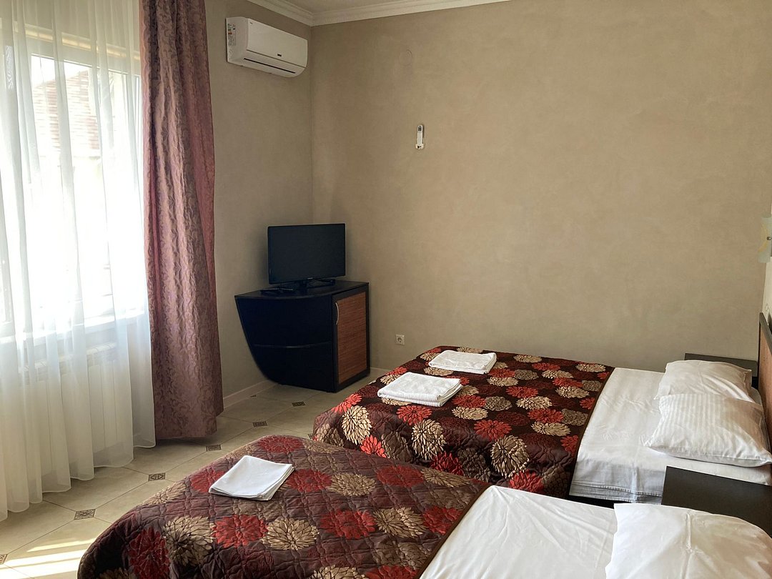 Двухместный номер с двуспальной и дополнительной кроватями.