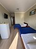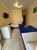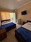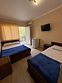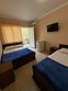 Номер оснащен удобной двуспальной кроватью и 2 односпальными кроватями прикроватными тумбочками, журнальным столиком, сплит системой, холодильником, жк телевизором, бельевым шкафом. Wi-Fi бесплатно на всей территории.
