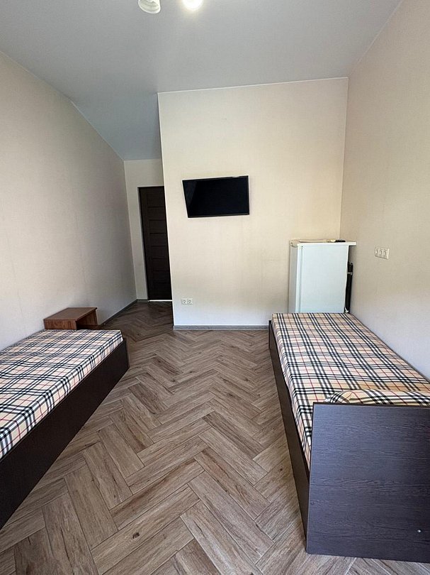 Номер оснащен удобной двуспальной кроватью прикроватными тумбочками, журнальным столиком, сплит системой, холодильником, жк телевизором, бельевым шкафом.Wi-Fi бесплатно на всей территории.