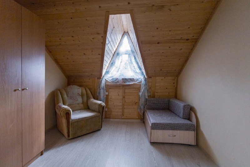 телевизор, Wi-Fi, кондиционер, фен, ванная комната, банные полотенца, тумбы, стулья, шкаф для одежды, зеркало, чайник, унитаз, раковина, душ, четыре односпальные кровати, стаканы, шесть односпальных кроватей, стол, туалетные средства, раскладное кресло, мини-холодильник, мансардные окна, мылоВ гостиничном номере