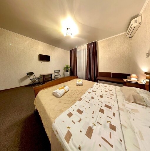 ТВ, К, с/у, Душ и с/у на этаже. Кровать 140х200 и диванчик 70х180 (в разложенном виде)