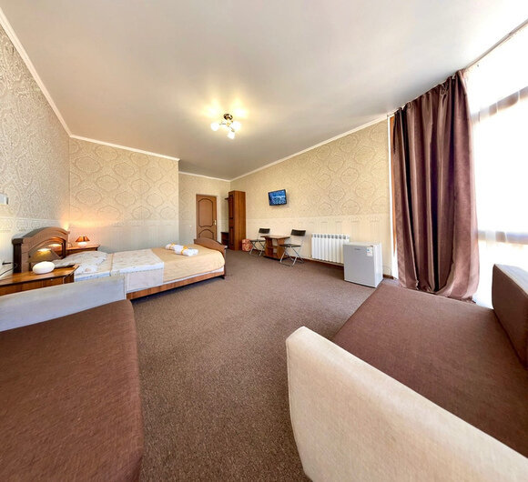 ТВ, К, Х, с/у, душ. кровать 140х200, кровать 70х200 и диванчик 70х180 (в разложенном виде)