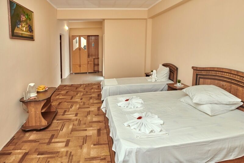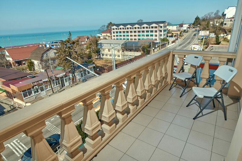 В 3-этажном здании отеля, построенного в узнаваемом «сочинском» стиле, гостей ждут светлые уютные номера. Отель предлагает разные варианты размещения, подходящие и для путешественников в одиночку, и для семейных гостей. В номерах есть кондиционеры, холодильники и телевизоры, санузлы оснащены душами, на балконах установлена мебель и сушилки для белья.