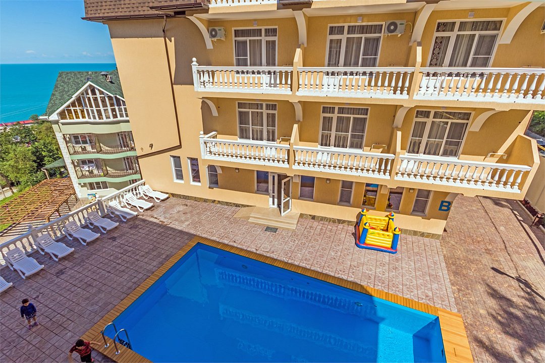 Wi-Fi, кондиционер, фен, санузел, балкон, две односпальные или большая двуспальная кровать, тумбы, стулья, шкаф для одежды, вешалки, зеркало, раковина, душ, вид на море, туалетные средства, мангал, сушилка для белья, раскладной диван, телевизор с плоским экраном, мини-холодильник, москитная сетка, вид на бассейн, рабочий стол, услуги прачечной (платно), затемняющая штораВ номере