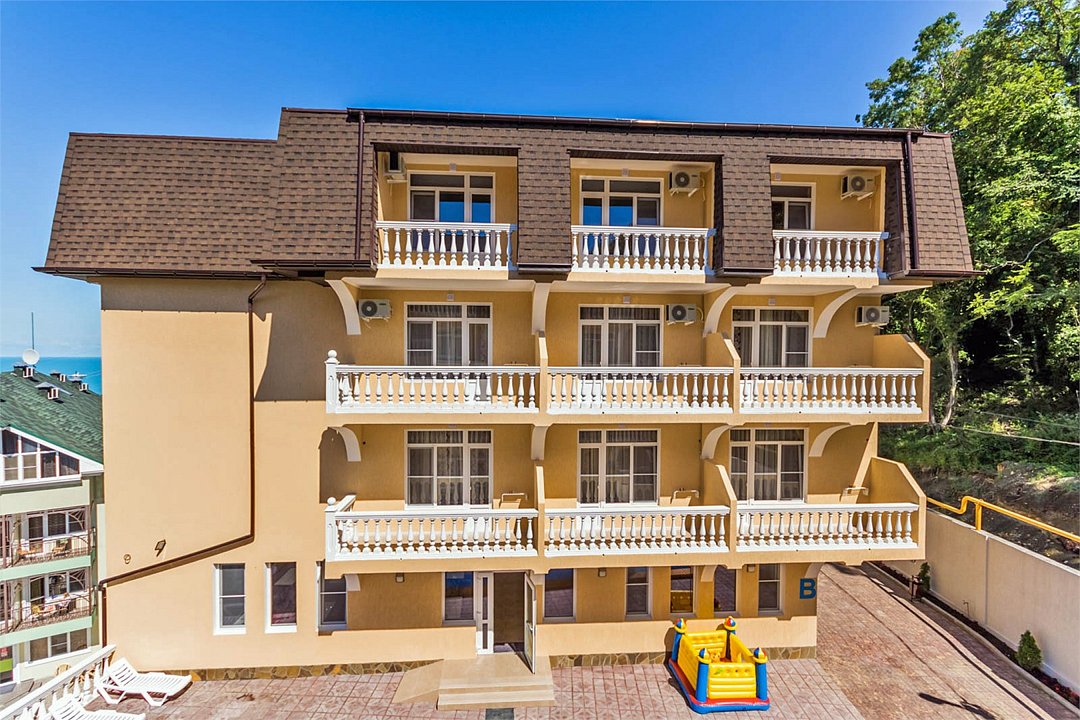 Особенностью номера является терраса с живописным панорамным видом на море и зоной для комфортного отдыха. Номер состоит из двух отдельных комнат, соединяющихся большой террасой, подходит для отдыха с семьей от 4-х до 6-ти человек, общая площадью 31 кв. м.+ терраса 15 кв. м. В первой комнате двуспальная кровать и диван на два дополнительных места 120*200. Вторая комната две односпальные кровати.Услуги и удобства