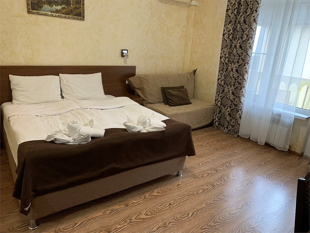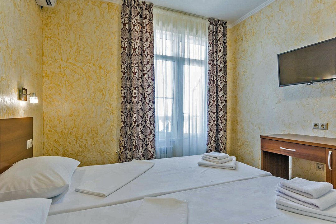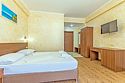 Комфортный и просторный семейный номер с балконом, площадью 20 кв.м. Дополнительное место раскладной диван 120*200, для семьи от 2 -х до 4-х человек. Имеется все необходимое для независимого уютного отдыха. Современный дизайн спокойных тонов способствует гармоничному полноценному досугу.Услуги и удобства