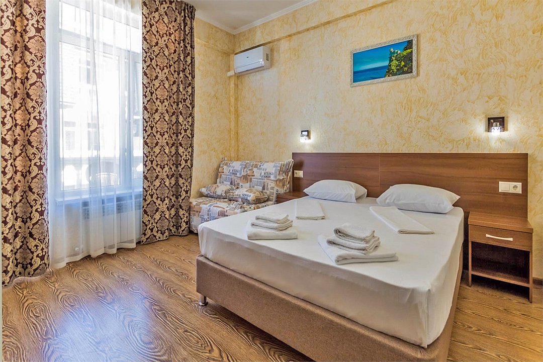 Вы можете свободно уединиться на балконе с панорамным видом на море за чтением книги или с чашечкой утреннего кофе. Комфортабельный уютный номер с дополнительным спальным местом. Идеально подходит для отдыха всей семьи от 2-х до 4-х человек.Услуги и удобства