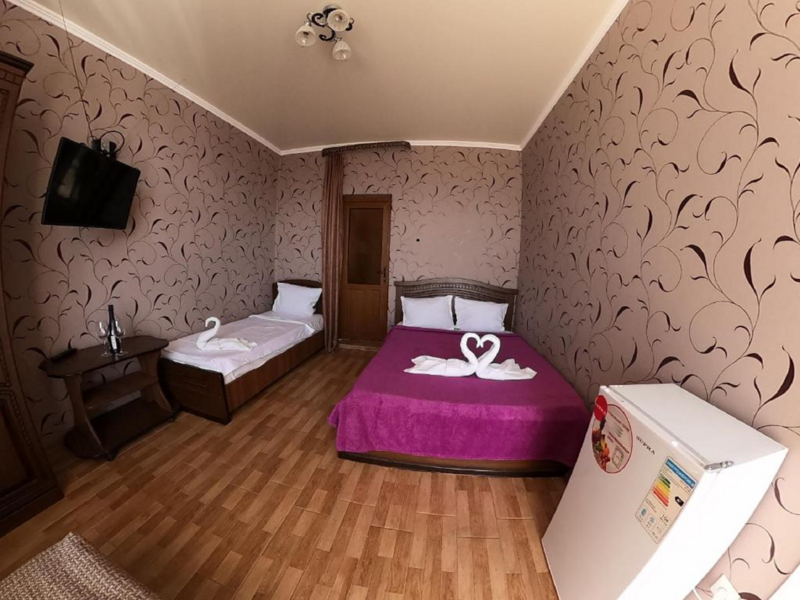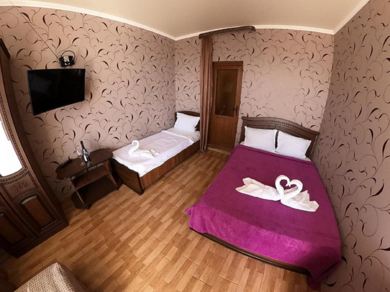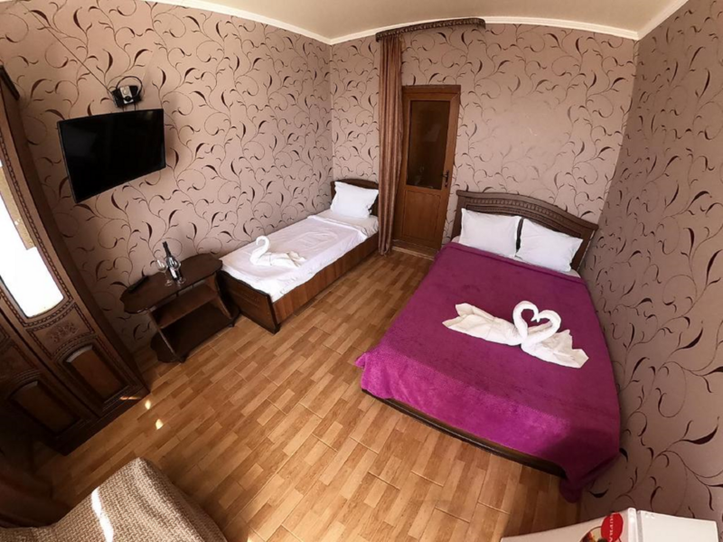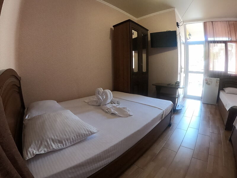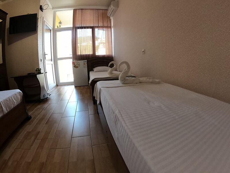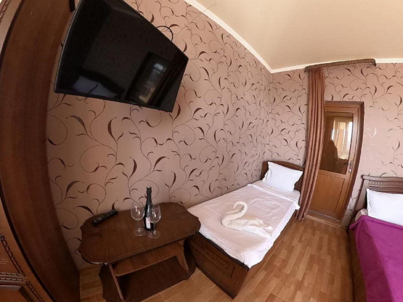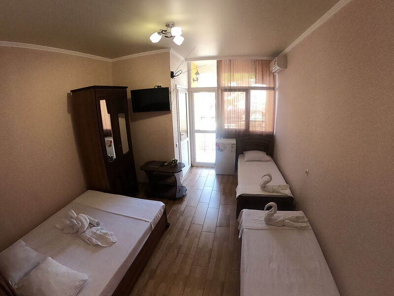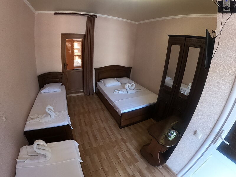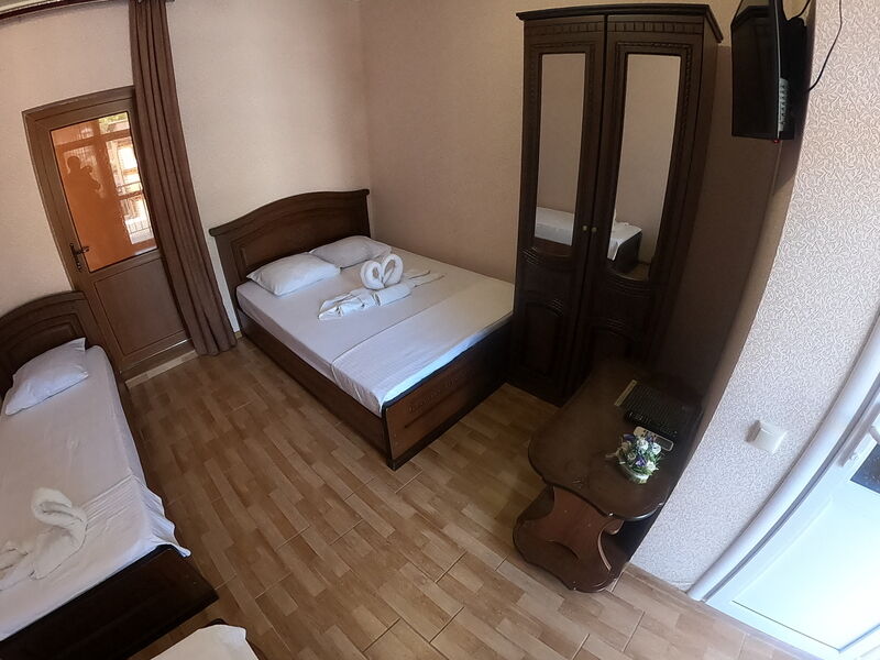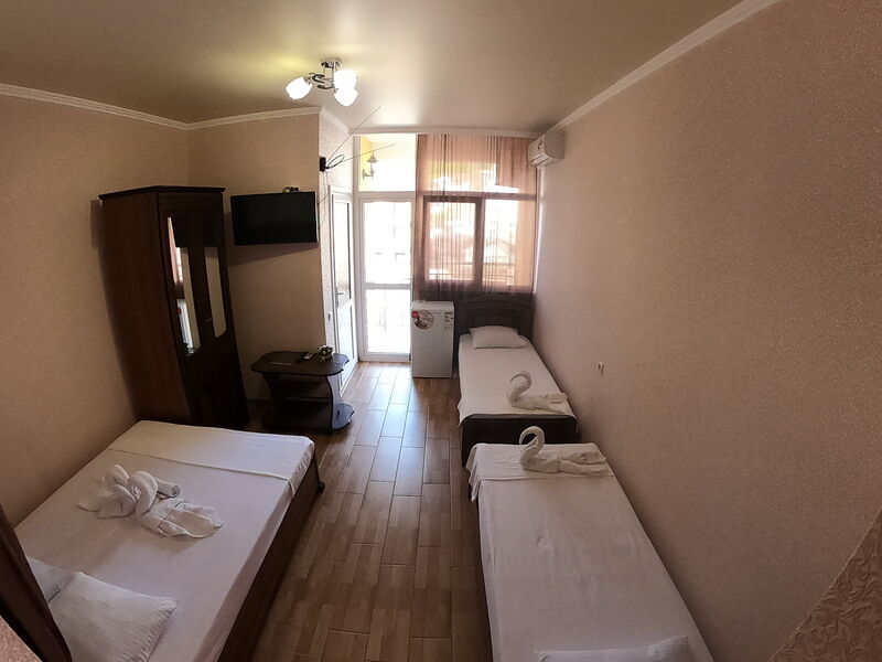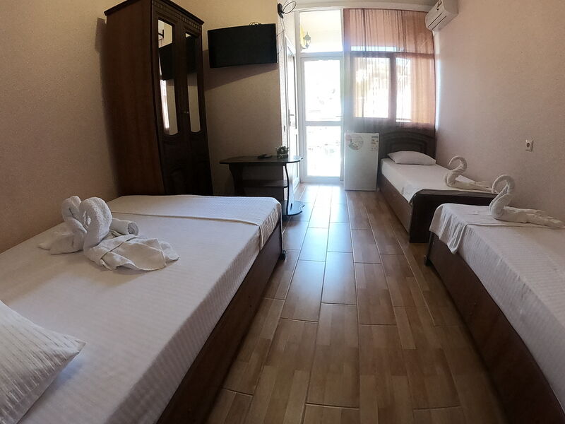 Трехэтажный корпус отеля расположен в 200 метрах от морского побережья. К услугам отдыхающих комфортабельные номера, рассчитанные на разное число гостей. В каждом номере есть санузел с душем кондиционер, телевизор, электрочайник, набор посуды и гладильные принадлежности.