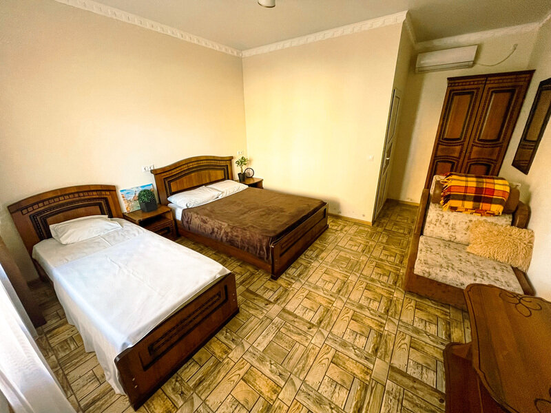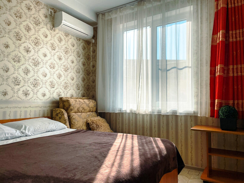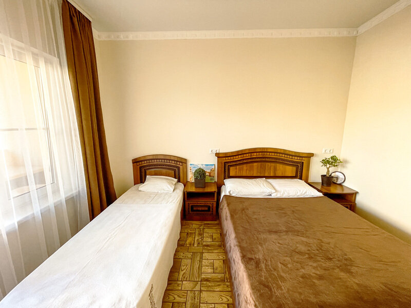 Отель занимает 3-этажное здание. В номерах гостей ожидают телевизоры и холодильники, а некоторые номера также имеют балконы или лоджии для дополнительного комфорта. Санузел может быть как индивидуальным, так и общим на этаже. В некоторых номерах предусмотрены холодильник и электрический чайник. Для удобства гостей на территории есть общая кухня, где можно приготовить еду самостоятельно.