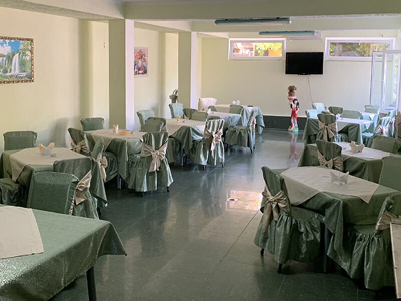 В первой половине дня на территории отеля работает столовая с европейской кухней, на заднем дворе организована зона барбекю, где гости могут приготовить мясо.