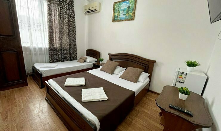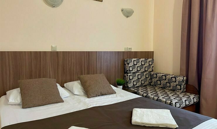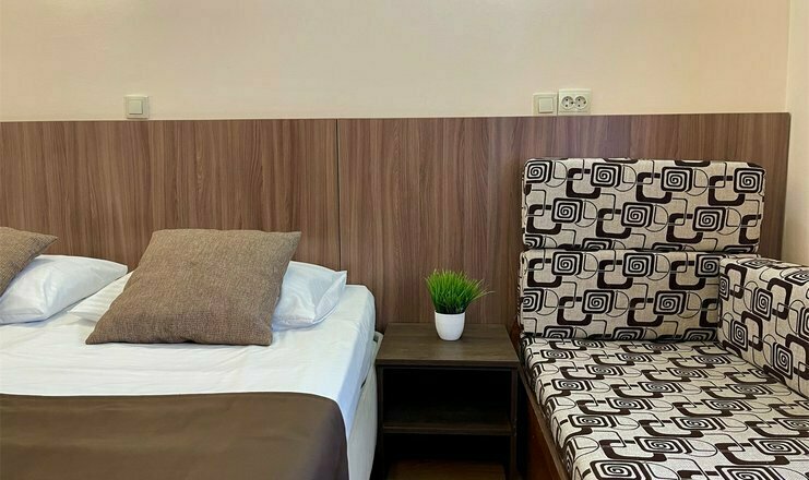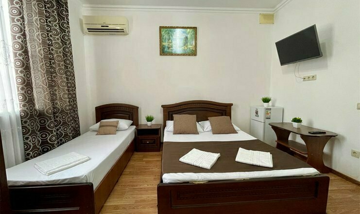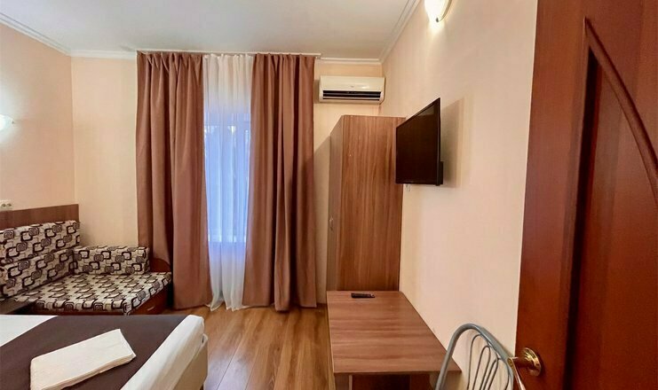 Номера, выполнены в единой цветовой гамме, установлена функциональная мебель. В числе прочих удобств: телевизор, анатомический матрас, набор постельного белья. Собственная ванная комната включает в себя: душ, туалет, раковина.