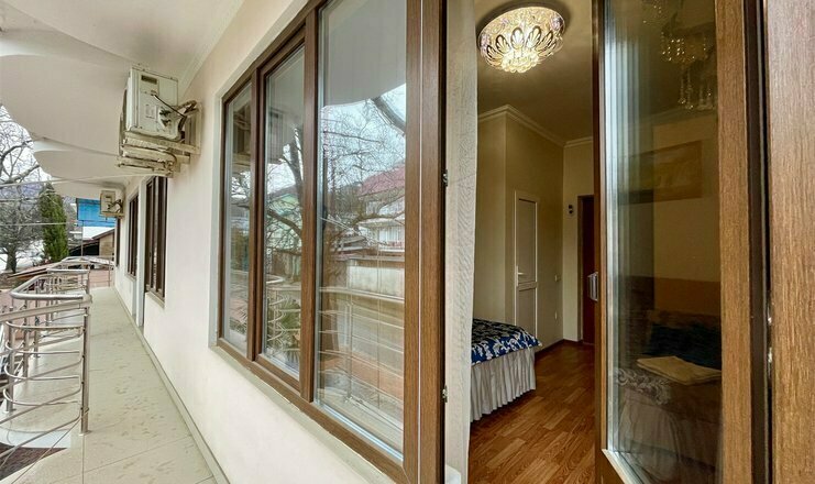На поезде до ж/д вокзала Сочи, далее на электричке до станции «Лоо», затем пересадка на автобус № 77, 148, 149, 150, 151, 75, 76 до остановки «Санаторий Горный Воздух», далее пройти 1,93 км до гостевого дома.