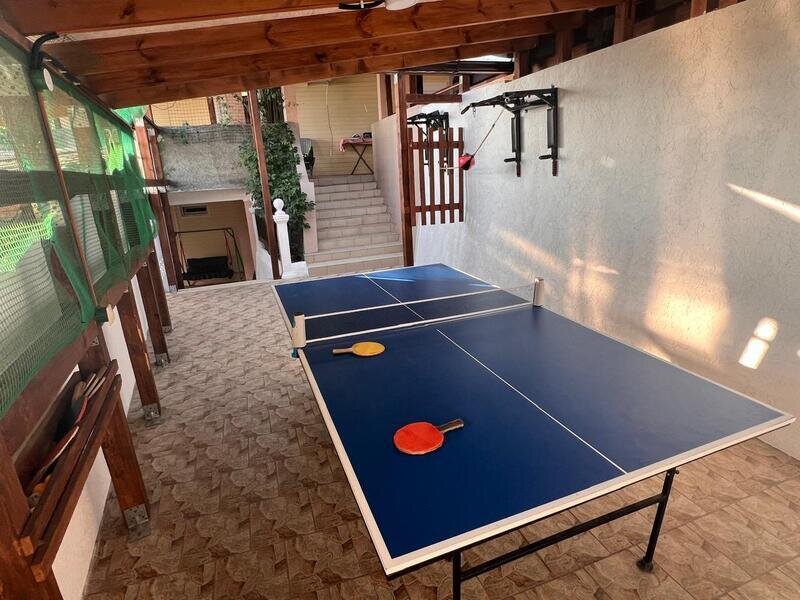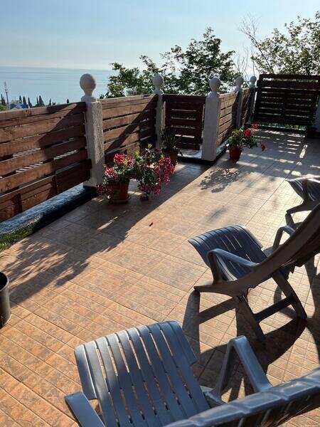 На территории дома есть большие террасы, бассейн, качели, шезлонги, детский уголок, теннисный стол и множество мест для отдыха, чтобы сделать пребывание гостей комфортным. С террас открывается прекрасный вид на море, что привлечет любителей фотосъемок.