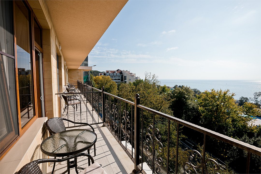 Wi-Fi, кондиционер, светильник, фен, банные полотенца, балкон, балкон с красивым видом, двуспальная кровать, тумбы, шкаф для одежды, вешалки, чайник, унитаз, раковина, отопление, отдельный вход в номер, душ, вид на море, плиточное покрытие, стаканы, стул, стол, туалет, сушилка для белья, телевизор с плоским экраном, мини-холодильник, номер для некурящих, рабочий стол, кресло-кровать, уборка номера, услуги прачечной (платно), мылоВ гостиничном номере