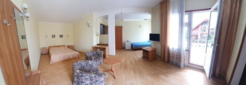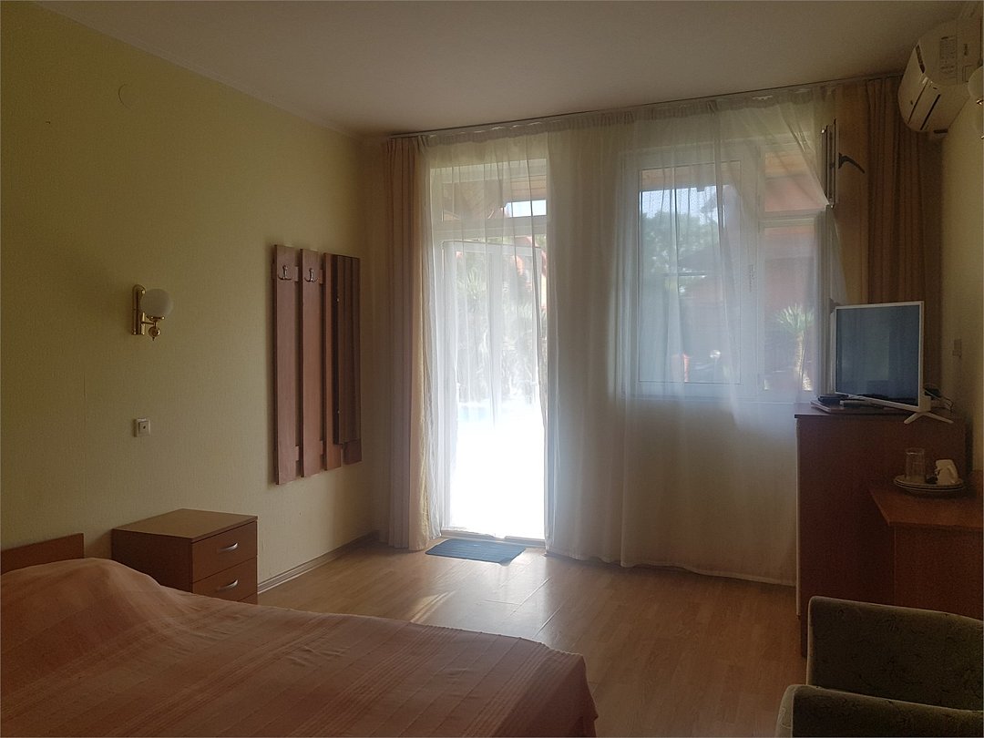 июль 2020 г.УЮТНЫЙ УГОЛОКВсем привет! Очень хорошее местечко в Лоо. Во-первых, очень уютно, отдельная территория. Номера просторные и обустроенные. Персонал хороший и вежливый. Питание действительно пансионатское, но вкусное и обильное. При этом можно к определенному времени в баре заказать и магнальное меню ()всё свежее). Во-вторых, бассейн рядом с баром, где можно практически до позднего времени купаться, попивая винцо или чачу. В-третьих, дикий пляж рядом (дорога по тропинке через ж/д линию). Пляж действительно дикий - нет толп народу, размещайся где хочешь и где удобно. Море чисто и прозрачное. Общее впечатление - супер !!!! Т.к. есть с чем сравнивать-объехали всё черноморское крансодарское побережье от Анапы до Адлера. РЕКОМЕНДУЮ !!!