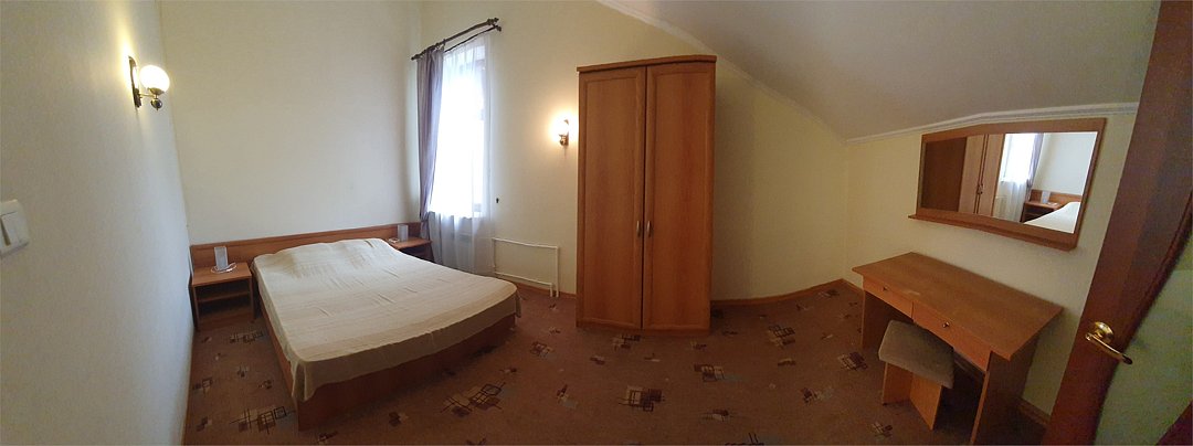 1-2 комнатный, двухместный, 1 доп.место, санузел с ванной и биде, ТВ плазма, холодильник, кондиционер, фен, сушилка для бельяУслуги и удобства