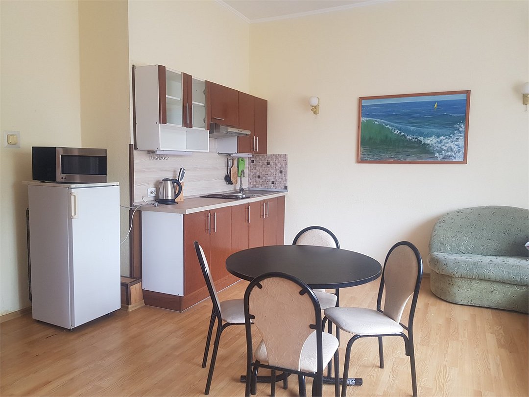 2-комнатный, 4-х местный (2 доп.места), мини-кухня с набором посуды, СВЧ т чайником, санузел с ванной и биде, ТВ плазма, холодильник, кондиционер, фен, сушилка для бельяУслуги и удобства