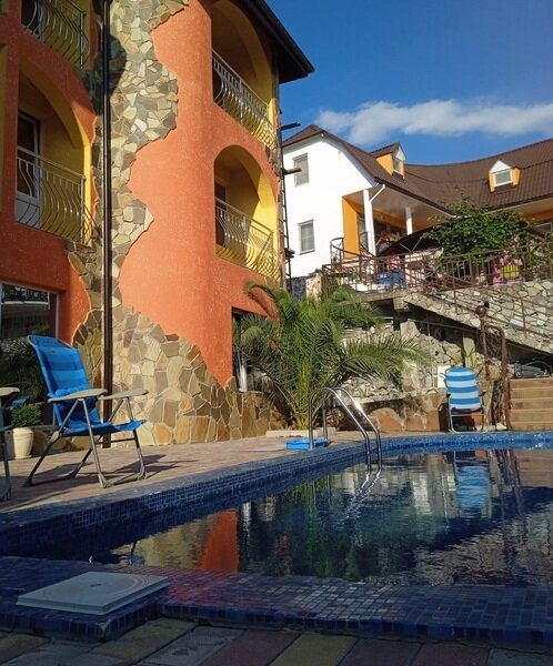 Отель "Приза" расположен в 520 метрах от Черного моря, в курортной зоне посёлка Лоо под названием «Горный воздух».