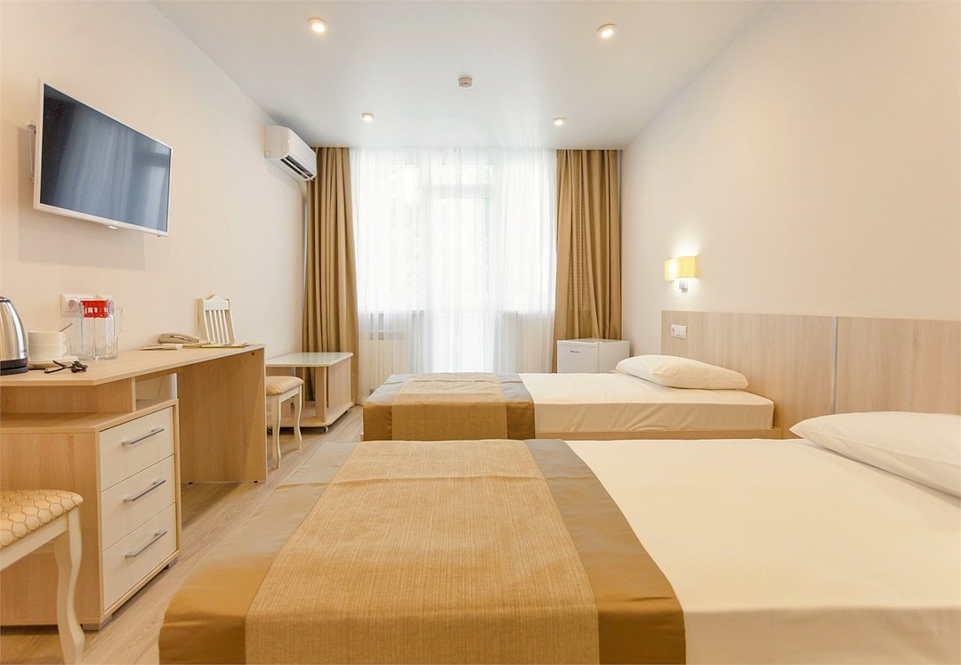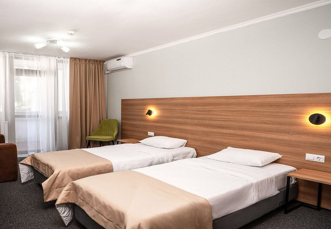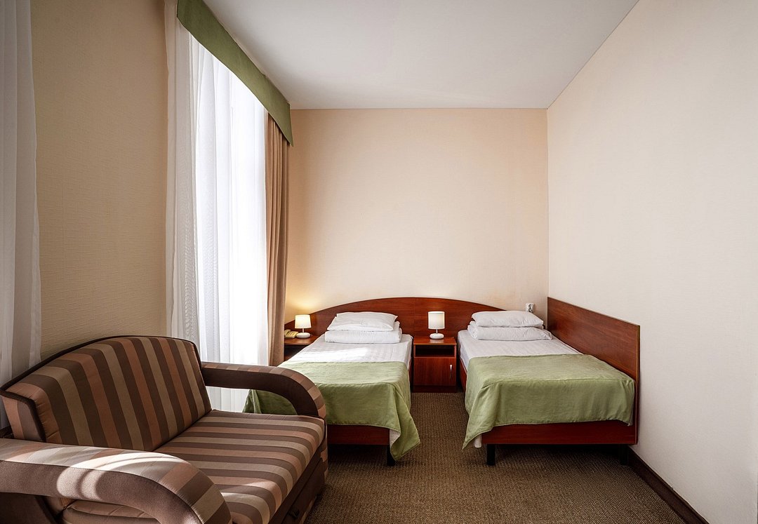 Двухместный однокомнатный номер (относится к 1-ой категории). В номере есть все, необходимое для отдыха и оздоровления. Номера расположены в корпусах № 1, 3, 6. Если Вам нужна дополнительная уборка, дополнительная смена постельного белья, туалетные принадлежности, одноразовые тапочки - обратитесь к сотрудникам отдела приема и размещения - услуга платная. Для самых маленьких гостей предоставляются бесплатно: детские кроватки (1250*650), услуга под запрос. Обратите внимание! Часть номеров данной категории не реновирована. Есть номера без возможности дополнительного места. Вид из окна, этаж и номер корпуса присваиваются при заселении, исходя из наличия свободных чистых номеров. При этом мы максимально учтем Ваши пожелания, чтобы сделать Ваш отдых комфортным.Услуги и удобства
