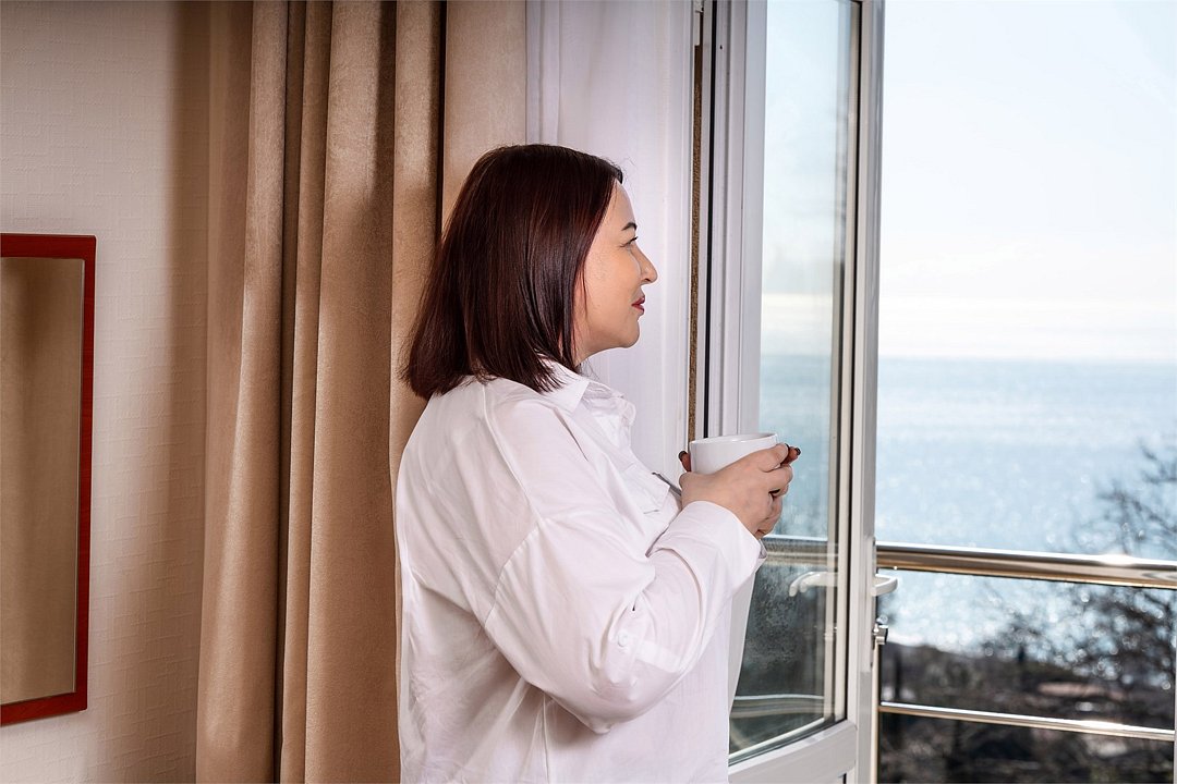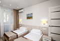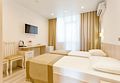 Двухместный однокомнатный номер (относится к 1-ой категории). Номера расположены в корпусе № 6 на 5 этаже с панорамным видом на море. Номер оснащен халатами и тапочками. Номер, разделенный на гостиную и спальную зону. В номере есть все, необходимое для отдыха и оздоровления. Если Вам нужна дополнительная уборка, дополнительная смена постельного белья, туалетные принадлежности - обратитесь к сотрудникам службы приема и размещения - услуга платная. Для самых маленьких гостей предоставляются бесплатно: детские кроватки (1250*650), услуга под запрос.Услуги и удобства