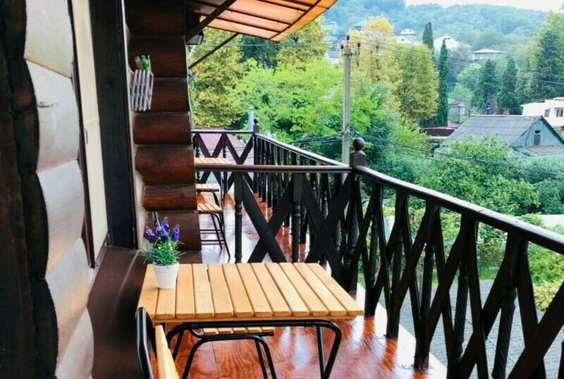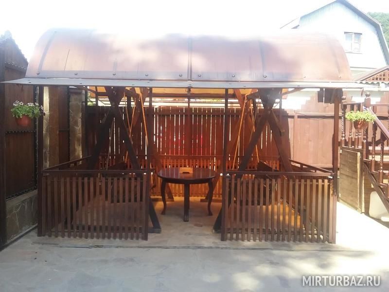 Гостевой дом расположен в 300 метрах (менее 5 минут пешком) от общественного галечного пляжа, оборудованного всем необходимым для полноценного отдыха, на побережье Черного моря. Здание представляет собой экологически чистый деревянный сруб из сибирской сосны.