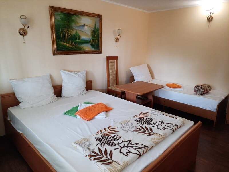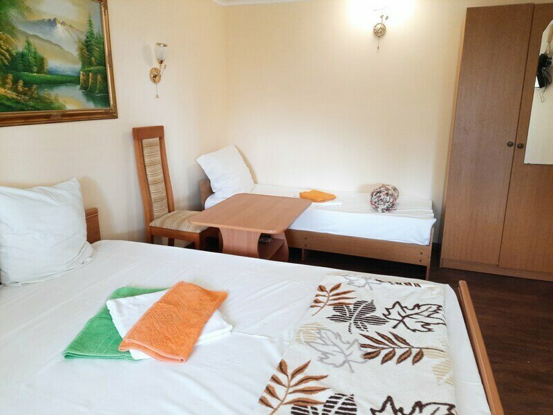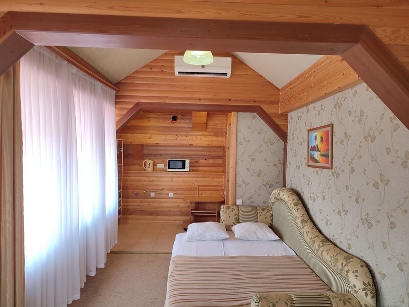 2-спальная кровать и две 1-спальные кровати, с/у с душем, кондиционер, телевизор, холодильник, мини-кухня с микроволновкой, электрочайником, посудой