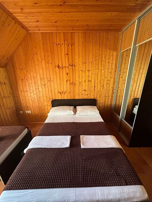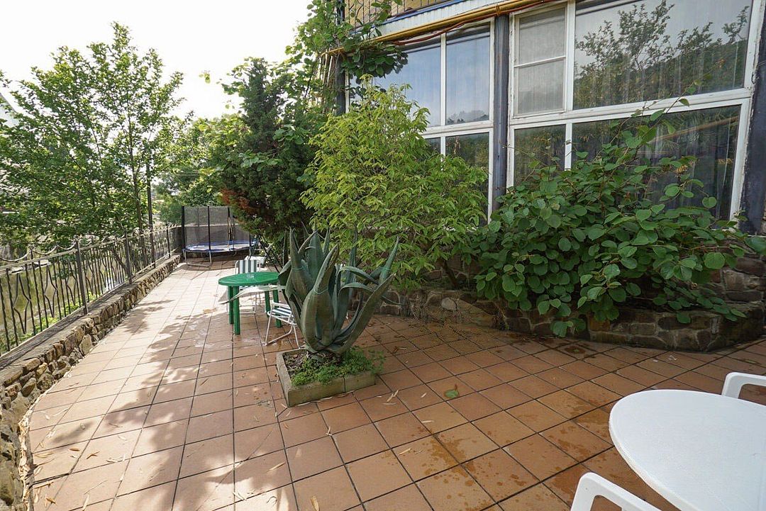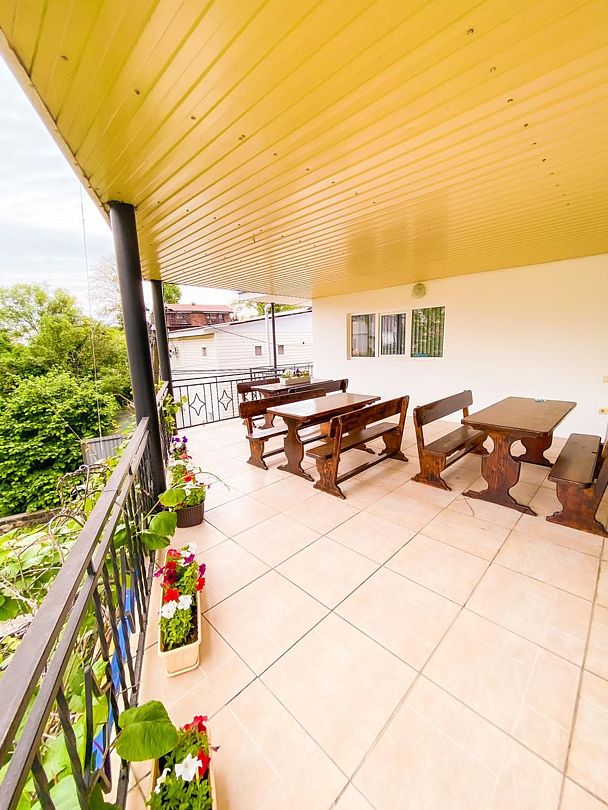 Для удобства отдыхающих на втором этаже организована общая кухня, есть просторные веранды на втором и третьем этажах. Во дворике организована мангальная зона, среди прочих услуг – безлимитный интернет, прачечная и багажная комната.