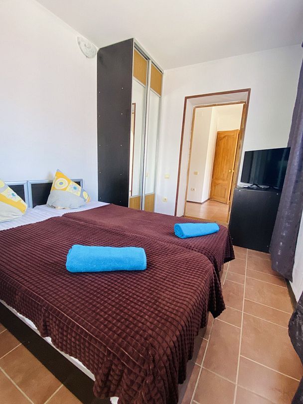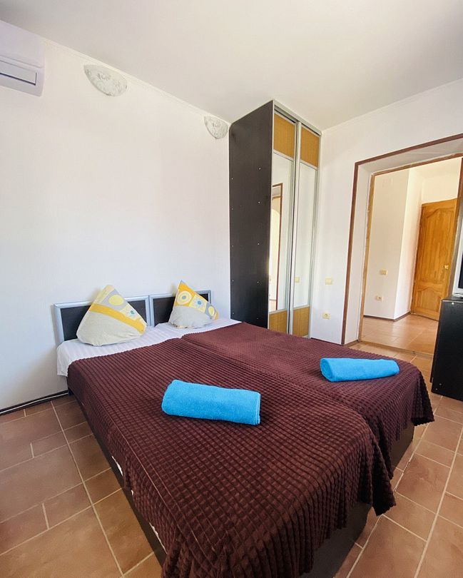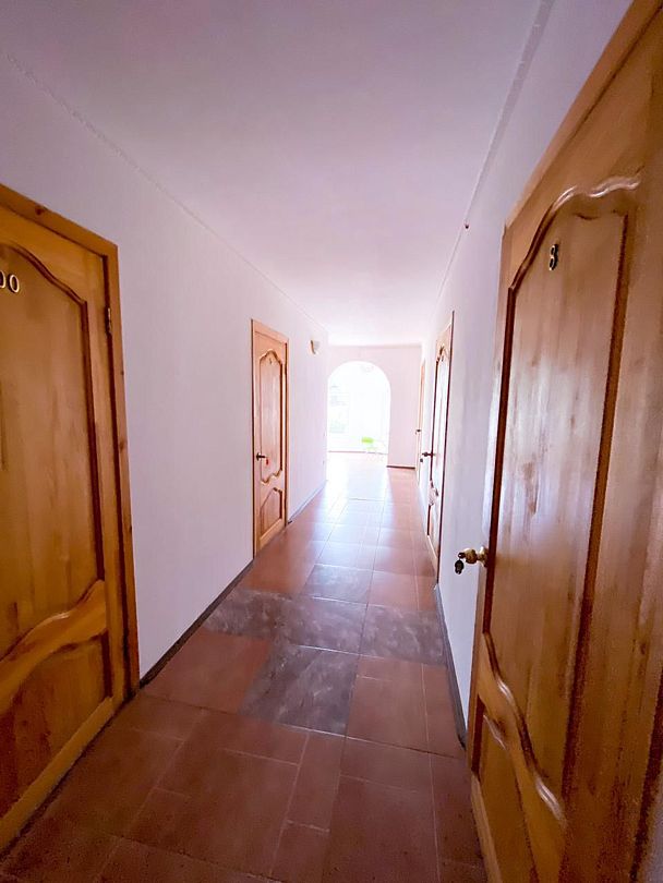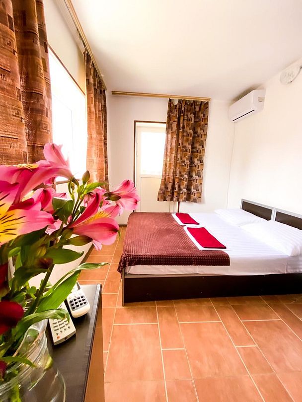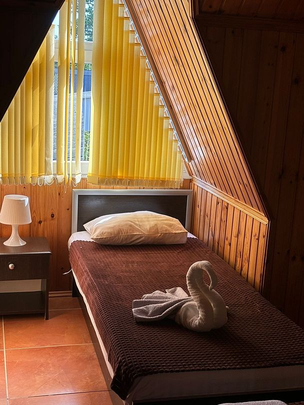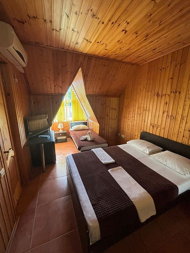 Четырехэтажный гостевой дом с мансардой разместился в 450 метрах от моря. Для размещения предлагаются номера разные по уровню комфорта и вместимости. В каждом номере есть кондиционер, телевизор, мини-холодильник, в бюджетных вариантах санузел располагается на этаже, другие же номера оснащены собственной ванной комнатой.