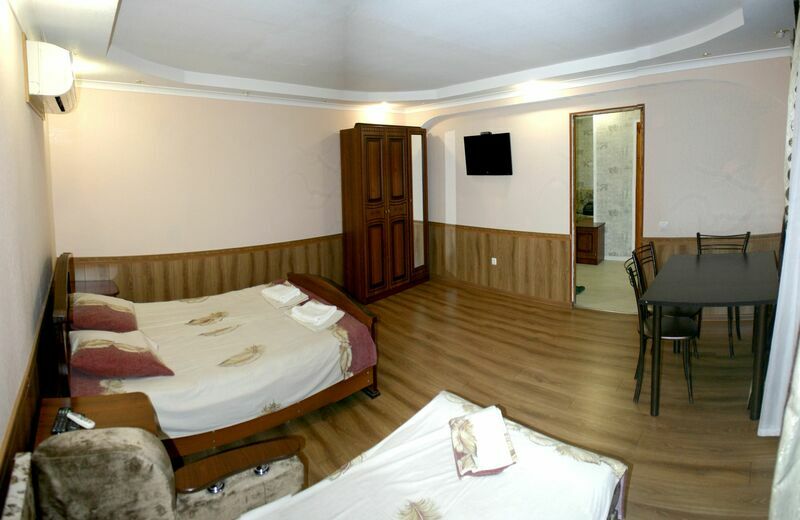Трехэтажный корпус гостевого дома разместился на улице Ягодная в 400 метрах от моря. Гостей ожидают стандартные комфортабельные номера, рассчитанные на 40 отдыхающих. В каждом номере есть свой санузел, кондиционер и телевизор, а также меблированный балкон.